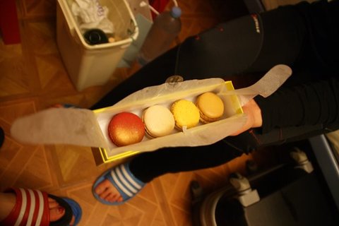 숙소에 혼자 남아있는 누나를 위해 마카롱을 사러 갔어요.
