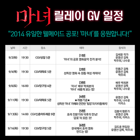 '마녀'를 응원하는 릴레이 GV 일정이 무꼴 페북에 뙇...!!!!!