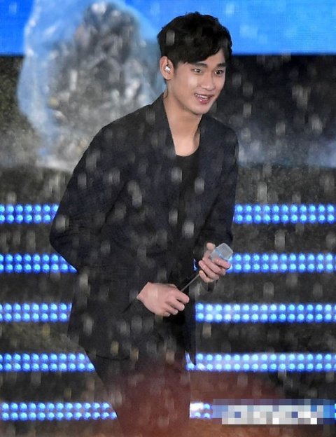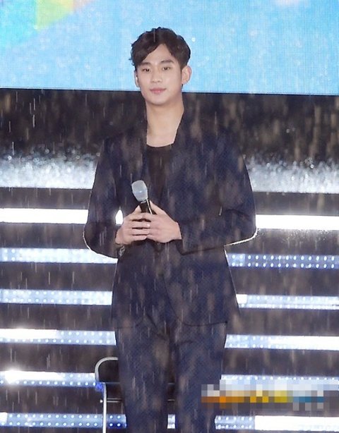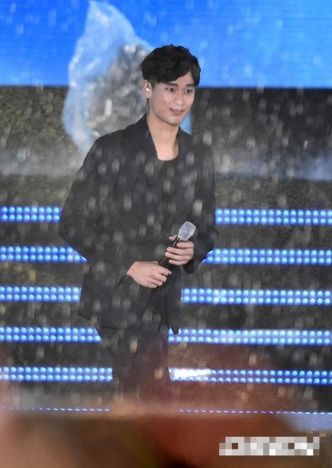 폭우를 뚫고 팬들을 만나러온 김수현의 멋진얼굴은