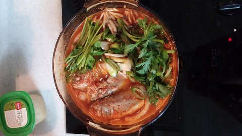 쌀쌀한 날 마트가서 조기 몇마리 사와서 얼큰 칼칼하게 끓인 조기 매운탕이에요