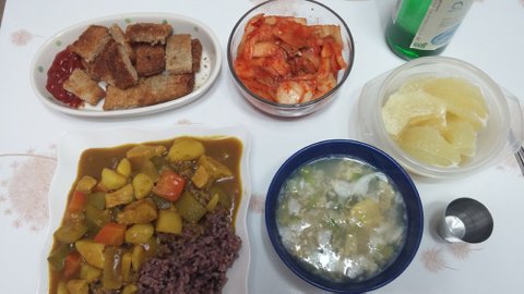 장보고 집에가서 카레 만들고 계란국 끓이고 돈까스 튀겨서 배터지게 뚝딱