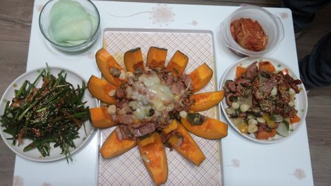 특별메뉴로다가 단호박 훈제오리찜을 만들어 봐써요