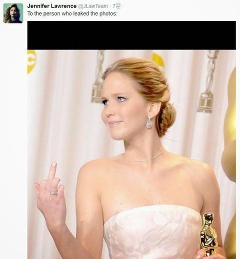 누드 유출된 제니퍼 로렌스 트윗 반응