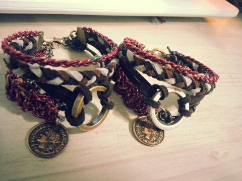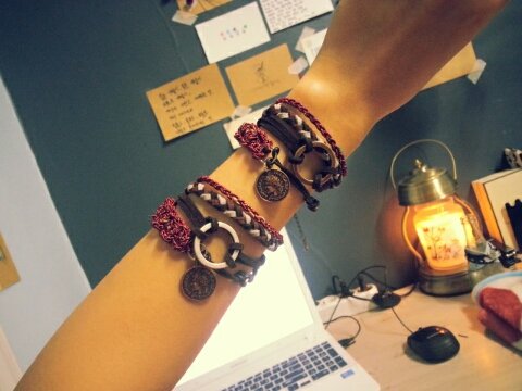 안녕하세요 ㅎㅎ처음으로 이렇게 판을 쓰네요 ㅎㅎ제가 이제껏 취미로 만들어온 핸드메이드 가죽팔찌와 체인팔찌를 보여드리려고 합니다.!!처음에는 남자친구와 할수 있는 팔찌를 찾다가 원하는 팔찌가 없어서 직접 동대문가서 재료를 구입해서 만들기 시작했어요 ㅎㅎ한번 만들어보니까 너무 재미있고 제 적성에 딱 맞는거 같아서 취미로 종종 재료사다가 재작하구 있답니다.!ㅎㅎ 요즘 부쩍 가죽소재나 스웨이드재질의 끈에 많이 관심이 가고 또 그것들로 팔찌를 만들고 있어요. 펜던트는 에스닉한 신주버니쉬와 니켈로되어진 소재를 많이 사용하고 있으며 얇은소재의 가죽 끈은 되도록이면 손으로 직접 꼬아 만들어 사용하는 중입니다.
