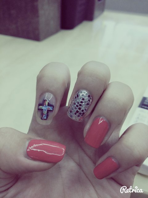 이거는 이번 여름에 한 십자가로 포인트를 준 핑크핑크한 네일 이랍니당~~