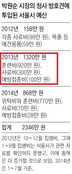 박원순이 키우는 개 1마리 = 병사 1명