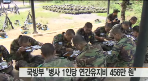 2013년 병사 1년 유지비 456만원