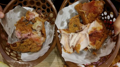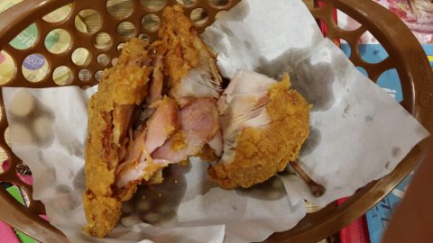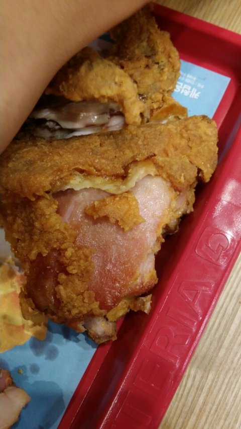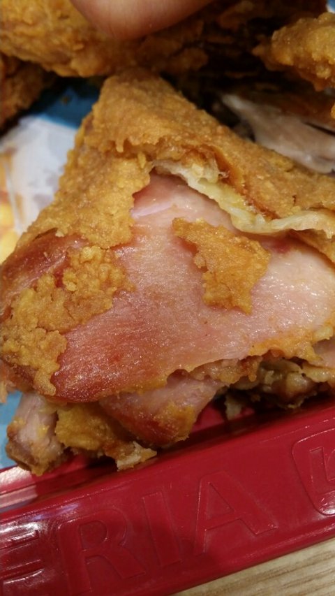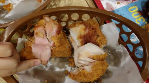 본사에서 급속 냉동을 하기 때문에 10분간 튀겨도 빨간 부분이 있고, 원래 빨간 닭을 사용한다는 것입니다.