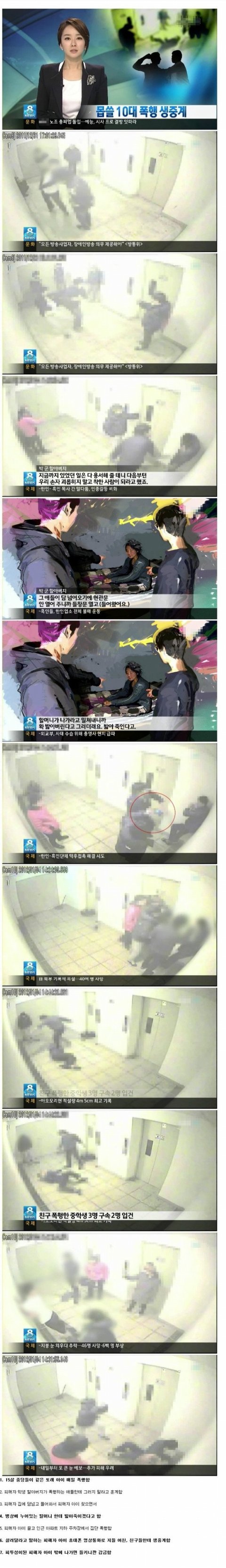 이거보면서 진짜 너무 마음아팠는데....저 새끼들 감방 못보내면 부모년놈들이라도 싸그리 쳐다 넣어라 자식 좃같이 키운 죄로 제발 좀. 가정형편상 할머니 할아버지랑 사는거같은데 성인도 견디기 힘들정도의 육체적 정신적 폭력에 집에 돌아오면 의지할데도 달리 없이... 고작 15살짜리 애 진짜 불쌍해 죽겠다 집안에 빽있었으면 저렇게 괴롭힘 당할 일도, 피의자들 솜방망이 처벌할일도 없었겠지