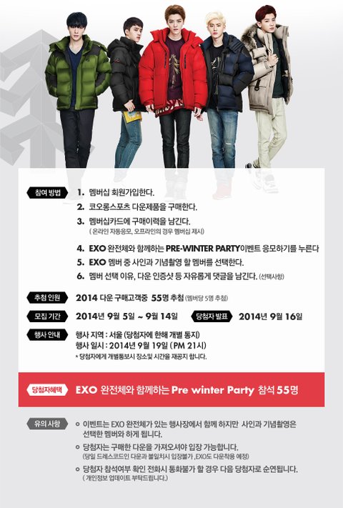 엑소 코오롱 이벤트 공지