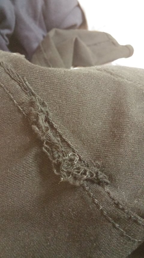 어제 택배와서 바지를 27 검정으로 시켰는데 새상품이 무릅도 튀어나와있고 엉덩이 안감박음질이 뜯겨서 옴 사진을 보자면 이러함