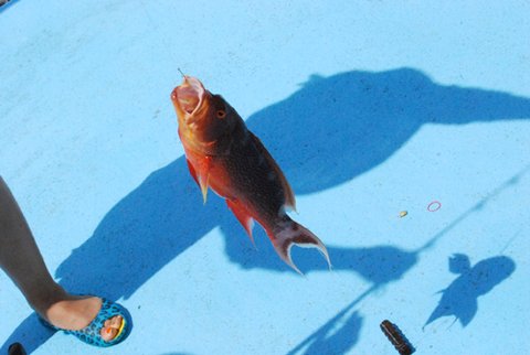 깊은곳으로 와서 배가 자리를 잡고서 낚시를 했는데