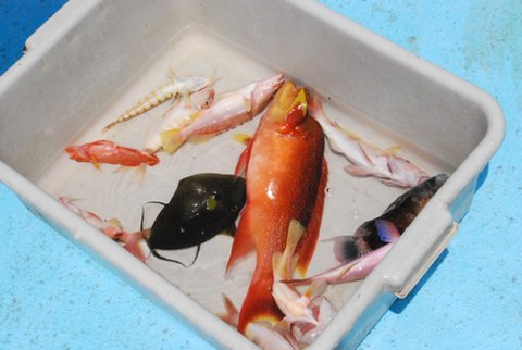 사이판에서 잡은 물고기라 그런지 색깔도 굉장히 예뻣어요 알록달록~