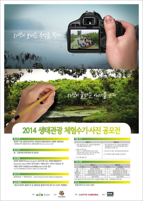 세 번째, 환경부에서 주최하는 ‘2014 생태관광 체험수기/사진 공모전’