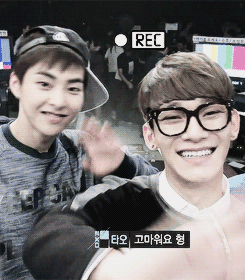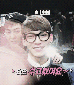 이 움짤이 보는순간 떠올랐어... 인사하는 김형제와 슝~~하고 바람처럼 지나가는 타오~ㅋㅋ 김형제 타오 조아여~~