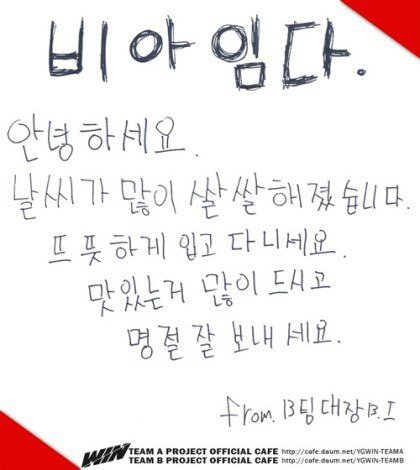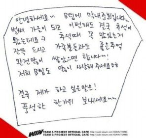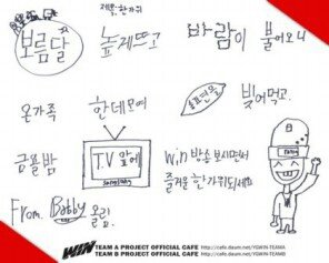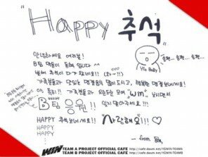 위너 추석맞이 인사 손글씨