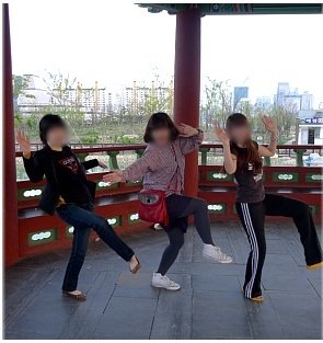 꽃구경하고 놀다가 힘들어서 연못 옆에 있는 정자에 가서 쉬기로 했는데 느닷없이 친구가 춤을 제안함.