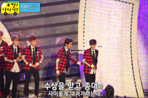 이건작년시상식때인데 무대내려올때 잘못내려와서 루한이당황ㅋㅋㅋ