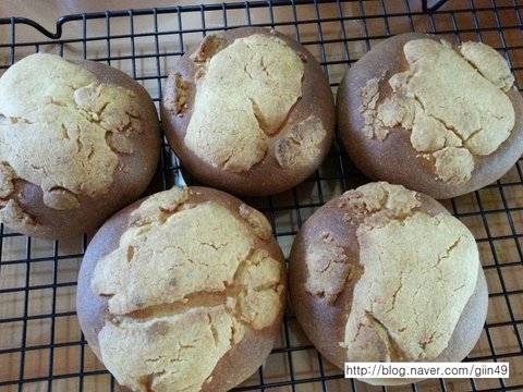 위에 소보루도 가득가득 올리구요~~ ㅎㅎㅎ 할머니 갖다드리는거라 밀가루 대신 쌀가루로 만들었어요!