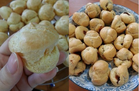 반죽이 뽕~하고 부풀어올라서 신기해요! 재료는 물 80 버터 65, 소금 2, 달걀 2개, 박력분 65 이구요, 블로그나 인터넷 찾아보시면 자세한 레시피 많이 나와있을 거예요 ^^