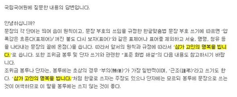 내가 아까 글을 썼는데 삼가 고인의 명복을 빕니다. 이 말을 했는데 누가 점을 빼라고해서