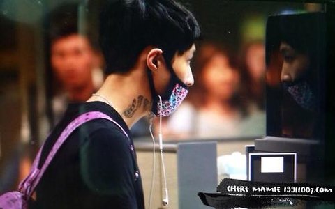 마스크를 여전히 이어폰 거치대로 사용하는 씽이는~