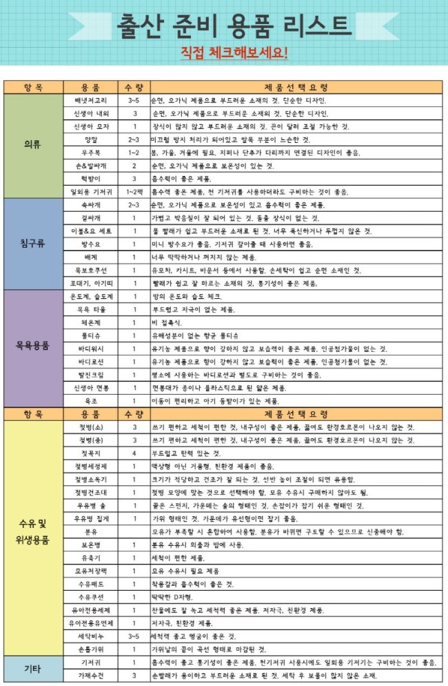 출산용품 리스트라고 하네요
