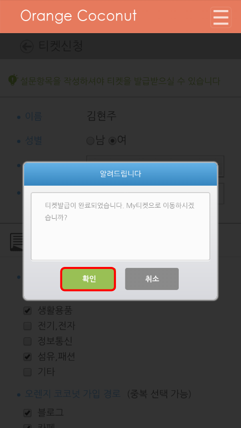 꼼꼼히 체크해 보시고 '오렌지코코넛'을 이용한 무료티켓으로