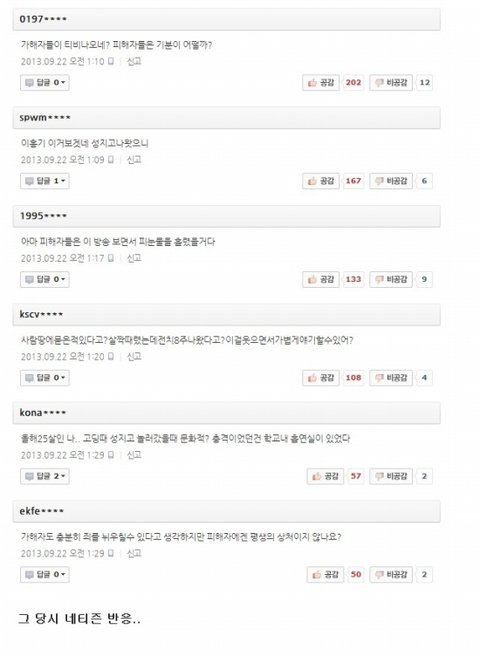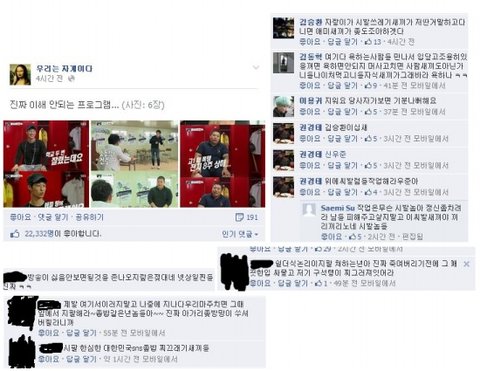 슈스케 나온후 일부 네티즌들 반응;
