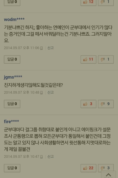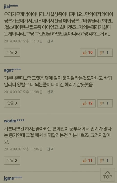솔직히 팬들입장에서는 기분나쁘지...열심히해서 군통령이라는 호칭도얻고인기도얻어서 군인들이좋아해주고그런건데 혜리도장난일수있겠지만 정수기꺼떼서 걸스데이로바꿔달라니..아님 딴데다가붙여달라고하는게 맞는듯