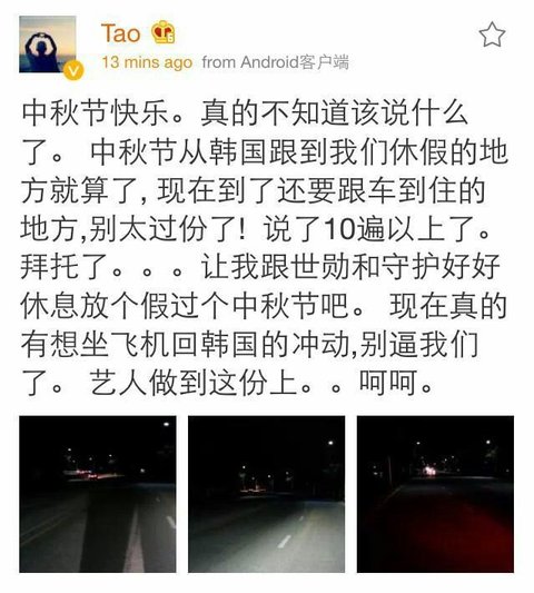 저랑 세훈,수호 중추절 휴가에는 쉬게 냅둬주세요.