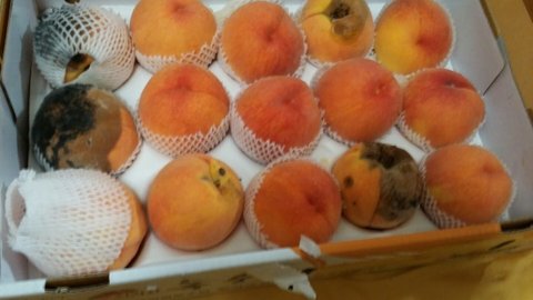신랑이 복숭아를 다섯 세트 마트에서 배달 시켰습니다.