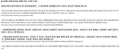 여자는 이미 널리 퍼진 이런 루머로 30만 넘으면 애도 제대로 못 낳을 여자라는 둥, 퇴물이라는 둥 이런저런 더러운 소리 많이 들어왔습니다.