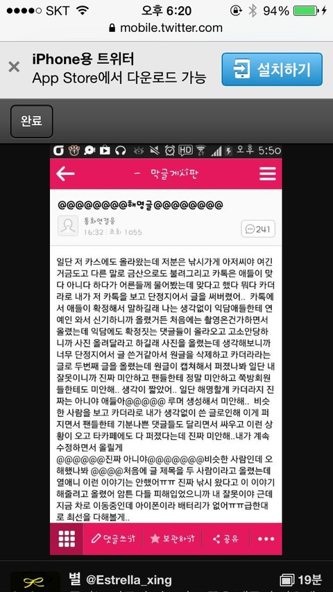 봤ㄴ으면 제발 좀 믿어 니네 엑소 팬 아님? 근데 엑소 팬들이 자기 가수 안 믿으면 누굴 믿음? 니네가 이런 루머에 넘어가서 화나고 그런 감정은 잘 알겠는데 입에 담지도 못할 욕하고 그건 아니지ㅋㅋㅋㅅㅈ도 그렇고 자기 팬들이 해주는 응원 받고서 더 열심히 하는 거 밖에 없는데 이렇게 확실치 않은 정보 듣고서 ㅈㄹ떠는 애들 보고 있자니 ㅈㄴㅋㅋㅋㅋㅋㅋㅋㅋㅋㅋㅋㅋㅋ사람이면 염치좀 키워라 제발ㅜㅜㅜ헛웃음 밖에 안나온다 그럴거면 왜 좋아함?이렇게 쉽게 쿠크 깨진다 탈덕한다 어쩐다 소리짓껄일거면서ㅋㅋ 눈이 있으면 해명글 좀 보고 떠들어라 니네가 난독증이 잇는 거 아니면 아이큐가 딸리는거 아니면 사진 보고서 잘 이해 할거라 믿음ㅇㅇㅇ그리고 경수야ㅜㅜ힘내ㅜㅜ