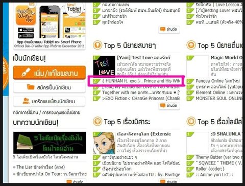 태국 유명포털사이트 팬픽순위에서 몇달째 내려오질 않는다고.. 하나는 어디였지'