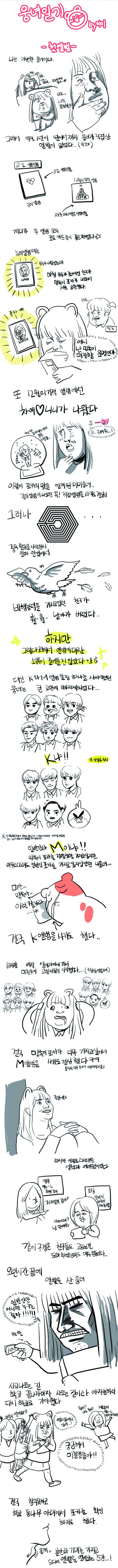 어떤걸 그릴까 고민하다가  처음으로 앨범샀을때를 그려보았습니다...ㅋㅋㅋㅋ