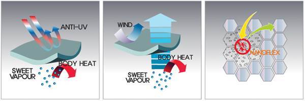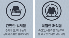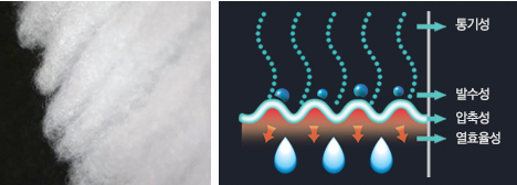 그림처럼 통기성, 발수성, 압축성, 열효율성이 뛰어나 실시간으로 변하는 날씨에