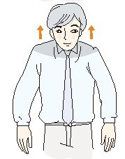 목과 어깨가 당기는 것을 느끼면서 양 어깨를 위쪽으로 끌어올린다