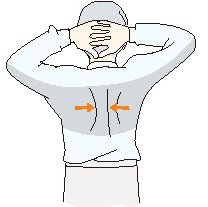 머리 뒤로 두 손을 깍지 끼고 허리를 반듯하게 세운다