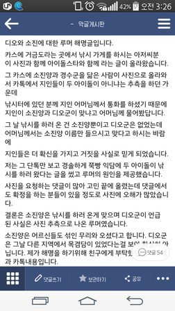 4) 해명글 내용에는 정확하게 디오가 아니라는 말은 없었음. 글쓴이가 고소, 신고 등의 댓글에 겁먹은것, 팬들의 협박으로 올린것일듯. 입장 바꿔서 생각해보면 나도 욕먹으면 바로 해명글 올리고, 사과문까지 올릴듯. 그냥 삭제만하고 짜져있으면 더 욕먹음.
