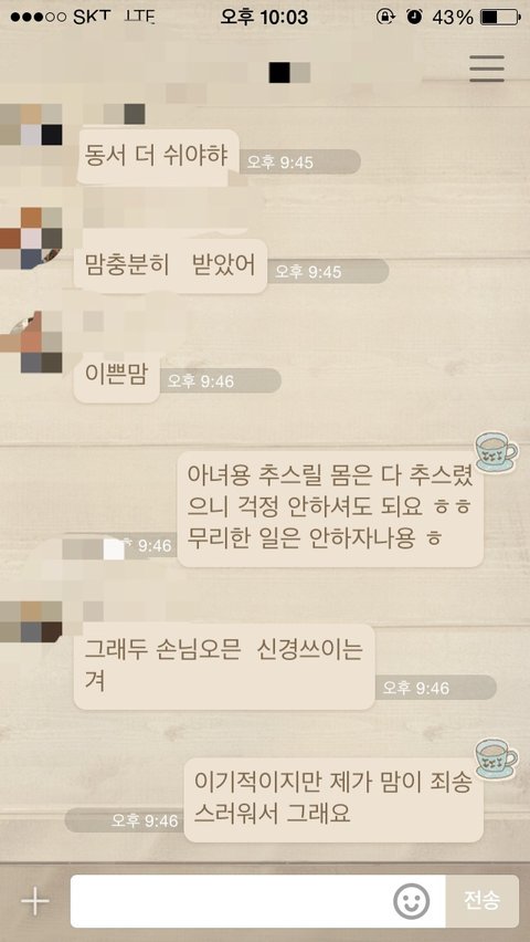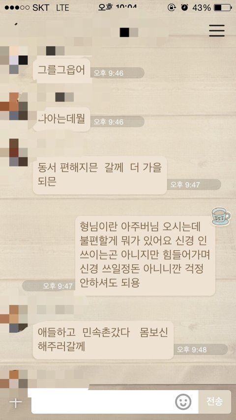 걸렸는데 마사지라도 받게 해드리고 싶어서 연락 드렸더니 우리 형님은 이렇게 반응 하시네요