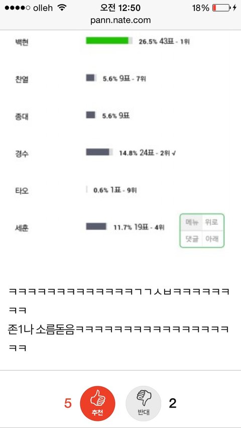 나 백현팬 네버 아닌데 아까 백현원탑이러고 증거올린 투표글에 디오투표돼있음 ㄷㄷㄷ 체크돼있는거좀봐 와 대박