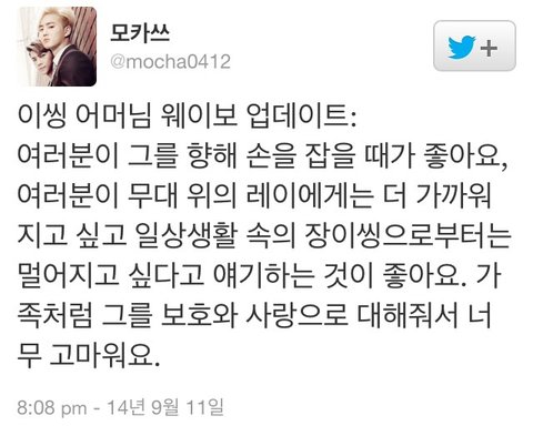 씽이 어머니 웨이보 해석~!!