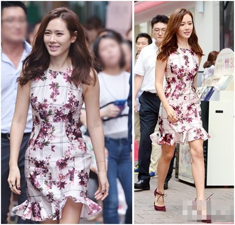최근 팬 사인회에 원피스에 지미추 구두 신고