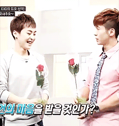 민석이 꽃받았을때 당황해서 손 어디다 둬야할지를 몰라해ㅋㅋㅋㅋ 혀도 빼꼼나오고 진짜 귀여워으앙
