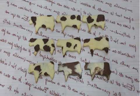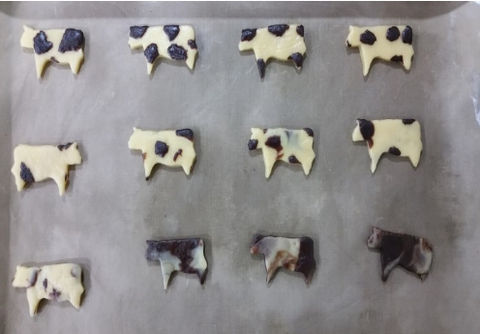 젖소 모양 쿠키커터로 모양을 만들어주고 구워주시면 되요