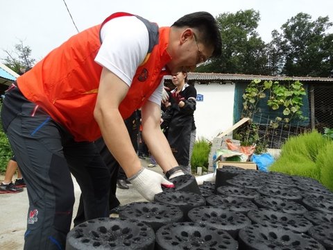대진국제자원봉사단에서는 도배 및 집수리 봉사를 맡았으며, 희망연맹에서는 연탄보일러를 새로이 설치해주었다.