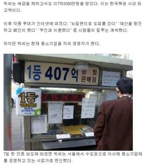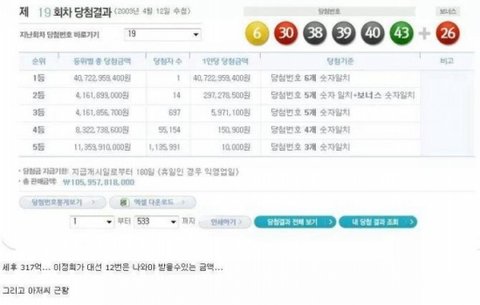 대한민국 역사상 최고의 로또 그후