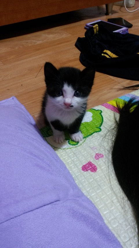 초등학교앞에 눈뜬지 얼마안되보이는 아기고양이가 버려져있어서 아빠가 데려오셨어요....