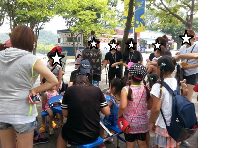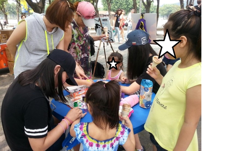 페이스페인팅 줄이 너무 길어서 아이들이 기다리는동안